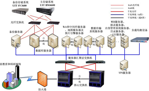 在“校(xiào)舍系統”中,最關鍵的業務為(wèi)數(shù)據庫應用,要求主存儲系統具有(yǒu)較大(dà)的IOPS能力;更高(gāo)可(kě)用性要求,存儲系統必須是FC控制(zhì)器(qì)配置,并可(kě)支持RAID 5、10等安全性高(gāo)的數(shù)據保護級别;具有(yǒu)高(gāo)級數(shù)據管理(lǐ)功能,如快照等此類應用的基本要求。因此,采用UIT BM4600産品作(zuò)為(wèi)數(shù)據庫應用的存儲系統。UIT BM4600能夠适應數(shù)據庫的數(shù)據訪問模式,具有(yǒu)卓越的IOPS 和(hé)MB/s,非常适用于在線事務應用處理(lǐ)系統和(hé)高(gāo)帶寬應用處理(lǐ)系統。BM4600具有(yǒu)業界領先的高(gāo)性能,加快了在線事務處理(lǐ)的能力,能夠縮短(duǎn)龐大(dà)數(shù)據的裝載時(shí)間(jiān),并且支持龐大(dà)數(shù)據合并,減少(shǎo)數(shù)據複制(zhì)的時(shí)間(jiān)。