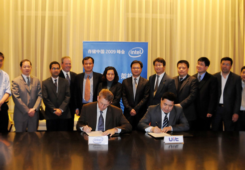 UIT公司總裁任志(zhì)輝先生(shēng)和(hé)Intel全球存儲事業部總經理(lǐ)Seth Bobroff先生(shēng)簽署合作(zuò)備忘錄
