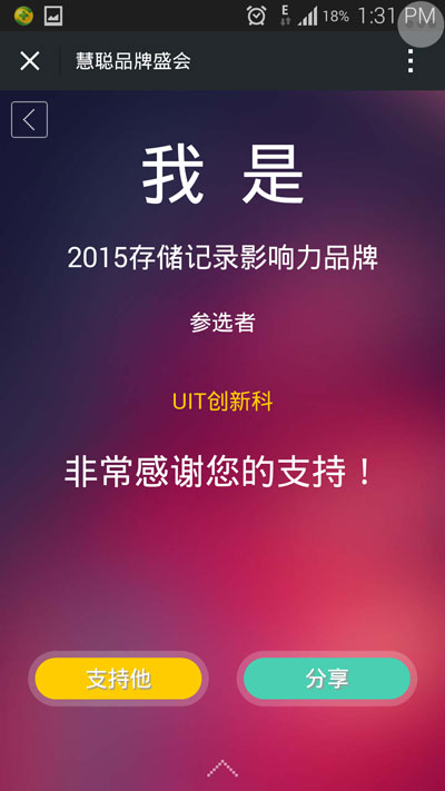 烽煙再起,又到了各大(dà)企業大(dà)顯身手的時(shí)候了,UIT創新科期待與大(dà)家(jiā)共同見證這份品牌榮耀,在此,我們誠邀大(dà)家(jiā),動動手指, 為(wèi)UIT品牌更多(duō)支持!通(tōng)過微信、網頁投票(piào)支持UIT,一起見證榮耀!